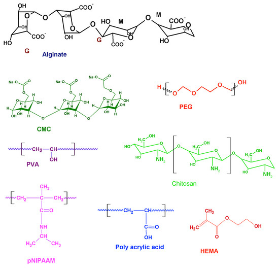 In addition, many other synthetic polymers, such as poly(ethylene glycol) (PEG), have shown promising biomedical applications due to their biocompatible, water-soluble, and non-immunogenic properties [23,24,25,26]. Copolymers such as PLGA-PEG-PLGA (poly-(DL-lactic acid co-glycolic acid) are formulated to increase the gel’s stability and drug-delivering capabilities [26].