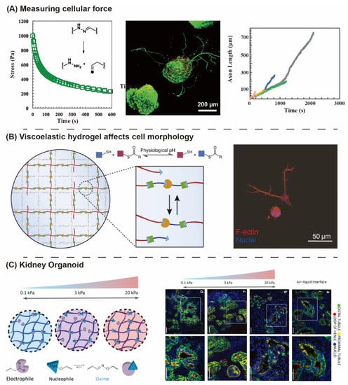 - Chaudhuri, O.; Cooper-White, J.; Janmey, P.A.; Mooney, D.J.; Shenoy, V.B. Effects of extracellular matrix viscoelasticity on cellular behaviour. Nature 2020, 584, 535–546. [Google Scholar] [CrossRef]