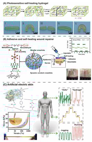 - Devi, V.K.A.; Shyam, R.A.-O.; Palaniappan, A.A.-O.; Jaiswal, A.K.; Oh, T.H.; Nathanael, A.A.-O. Self-Healing Hydrogels: Preparation, Mechanism and Advancement in Biomedical Applications. Polymers 2021, 13, 3782. [Google Scholar] [CrossRef]