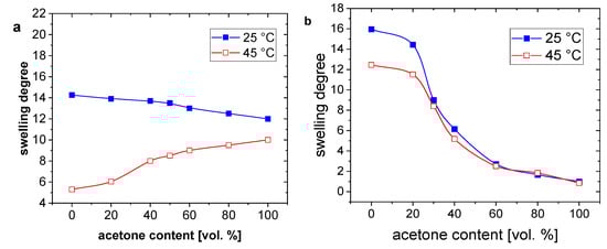 - Caykara, T.; Dogmu, M. The effect of solvent composition on swelling and shrinking properties of poly(acrylamide-co-itaconic acid) hydrogels. Eur. Polym. J. 2004, 40, 2605–2609. [Google Scholar] [CrossRef]