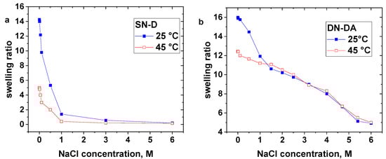 - Fomenko, A.; Sedláková, Z.; Ilavský, M. Phase transition in swollen gels 30. Temperature-induced phase transition in positively charged poly(N-isopropylacrylamide) hydrogels in water and aqueous NaCl solutions. Polym. Bull. 2001, 47, 367–374. [Google Scholar] [CrossRef]