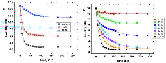 4.1.3. Deswelling and Swelling Kinetics