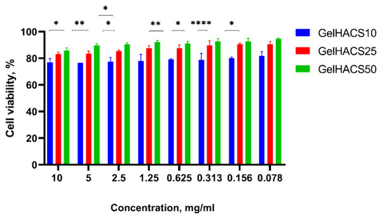 | GelHACS-10 | 400:10:100 | 78.5 ± 1.3 | 74.74 ± 1.0 |