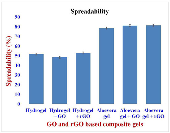 Spreadability of GO and rGO-based composite gels. Aloe vera gels are more spreadable than hydrogels.