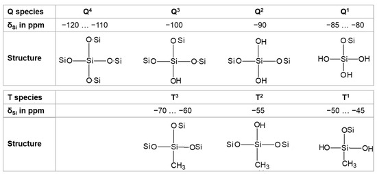 Structures and signals of silica and trifunctional silanes in the 29Si-MAS- NMR spectrum.