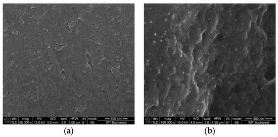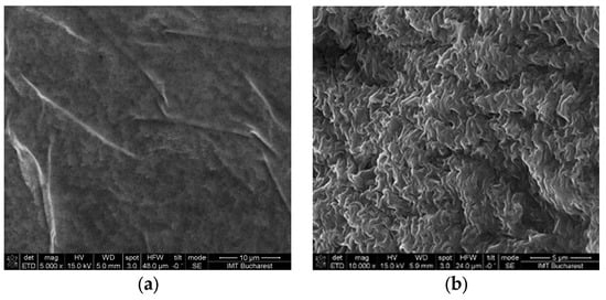 The preparation of the amorphous and solid hydrogels for the morphological and structural analysis consisted in drying the samples at room temperature for 5 days. For the amorphous hydrogel variants, a film was obtained by depositing the gel on the glass slide and then drying. Samples for the crosslinked hydrogels were also obtained by drying in the wells. The morphological analysis of the obtained hydrogels was performed by using the field-emission scanning electron microscope (FE-SEM) Nova NanoSEM 630 (FEI Company, Hillsboro, OR, USA). The Fourier-transform infrared spectra (FT-IR) of obtained hydrogels were collected by using the ATR device of the Nicolet i-S10 FT-IR spectrometer (Thermo Scientific, Waltham, MA, USA). The device was equipped with a diamond crystal and the spectra were recorded in the 4000–525 cm−1 spectral region at 4 cm−1 resolution with 32 scans.