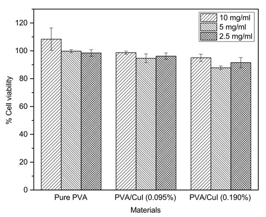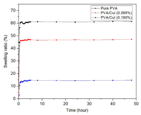 2.2.3. Swelling Behavior of Pure PVA and PVA/CuI Film