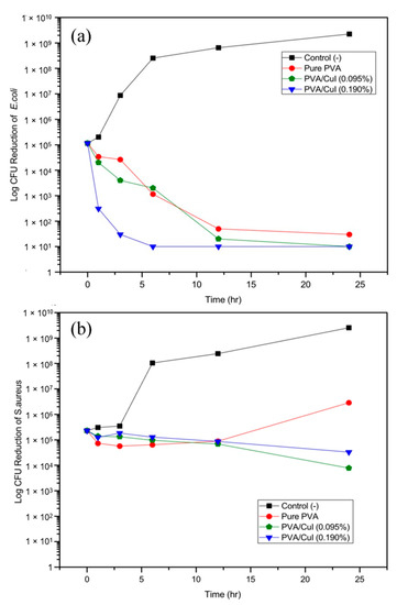 - Pramanik, A.; Laha, D.; Bhattacharya, D.; Pramanik, P.; Karmakar, P. A novel study of antibacterial activity of copper iodide nanoparticle mediated by DNA and membrane damage. Colloids Surf. B 2012, 96, 50–55. [Google Scholar] [CrossRef]