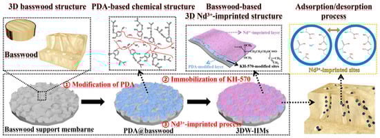 - Wu, Y.; Lin, R.; Ma, F.; Xing, W.; Pan, J. Three-dimensional macroporous wood-based selective separation membranes decorated with well-designed Nd (III)-imprinted domains: A high-efficiency recovery system for rare earth element. J. Colloid Interface Sci. 2021, 587, 703–714. [Google Scholar] [CrossRef] [PubMed]