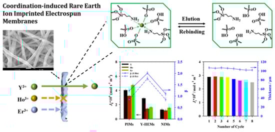 - Pan, W.; Chen, L.; Wang, Y.; Yan, Y. Selective separation of low concentration rare earths via coordination-induced ion imprinted electrospun membranes. J. Membr. Sci. 2022, 658, 120759. [Google Scholar] [CrossRef]