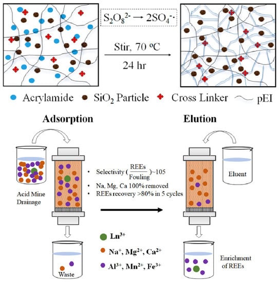- Wang, Q.; Wilfong, W.C.; Kail, B.W.; Yu, Y.; Gray, M.L. Novel polyethylenimine–acrylamide/SiO2 hybrid hydrogel sorbent for rare-earth-element recycling from aqueous sources. ACS Sustain. Chem. Eng. 2017, 5, 10947–10958. [Google Scholar] [CrossRef]