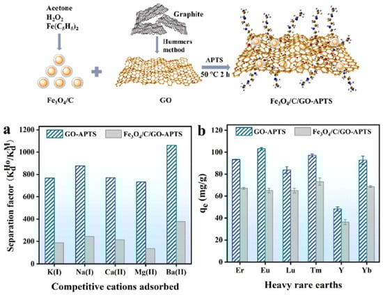 - Bao, S.; Wang, Y.; Wei, Z.; Yang, W.; Yu, Y. Highly efficient recovery of heavy rare earth elements by using an amino-functionalized magnetic graphene oxide with acid and base resistance. J. Hazard. Mater. 2022, 424, 127370. [Google Scholar] [CrossRef] [PubMed]