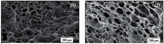SEM of the prepared HG Film: (1) control; (2) film loaded with AgNPs.