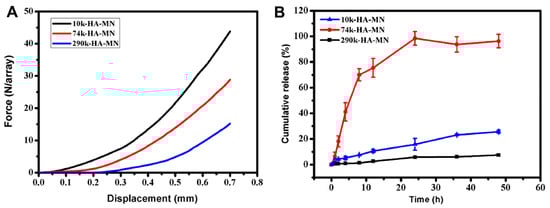 3.4.1. Hydrogel MNs’ Mechanical Strength