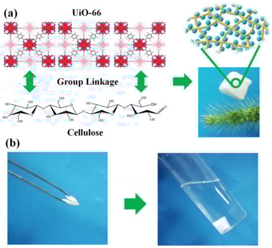 - Wang, Z.; Song, L.; Wang, Y.; Zhang, X.-F.; Hao, D.; Feng, Y.; Yao, J. Lightweight UiO-66/cellulose aerogels constructed through self-crosslinking strategy for adsorption applications. Chem. Eng. J. 2019, 371, 138–144. [Google Scholar] [CrossRef]