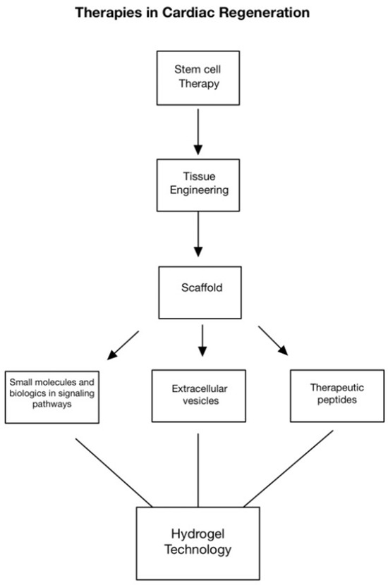 Approaches in cardiac regeneration include stem cell therapy, tissue engineering, scaffolds, altering molecular signaling pathways, extracellular vesicles, and therapeutic peptides. More recently, hydrogel technology has shown to be a promising method for the controlled release of targeted signaling molecules to promote cardiac repair and regeneration.