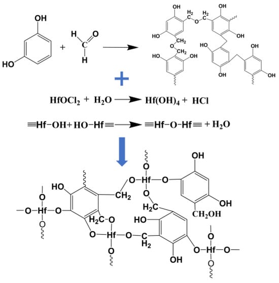 Reaction mechanism diagram of RF/HfO2 composite wet gel in sol-gel process.