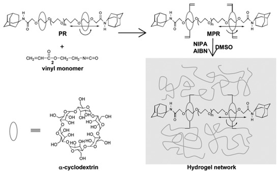 Synthesis of rotaxane cross-linked polymers using N, N-dimethylacrylamide and rotaxane cross-linking agent [54].