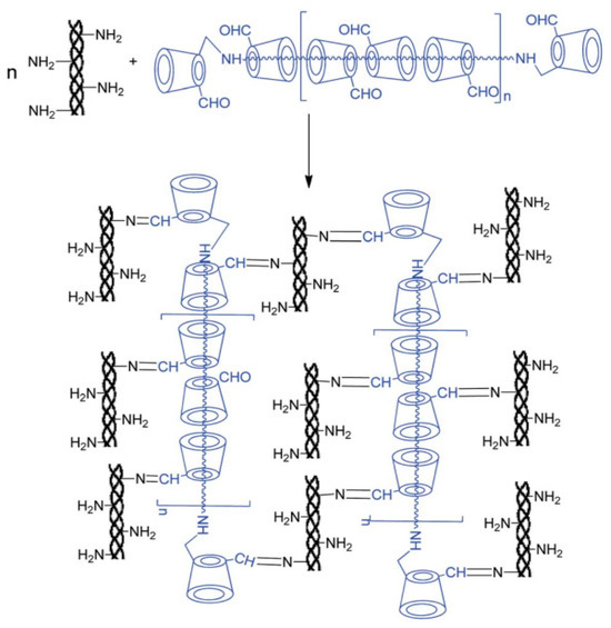 Scheme illustration for the reaction of collagen with β-CD polyrotaxane-CHO [45].