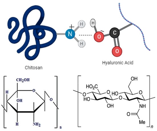 Chemical structures and interactions of chitosan and hyaluronic acid.