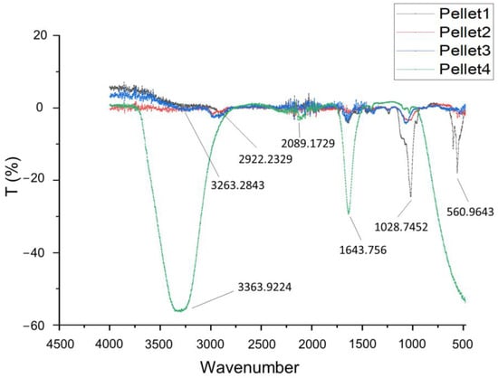 FT-IR spectra (4500–450 cm−1) of centrifuged culture media for the four screening samples.