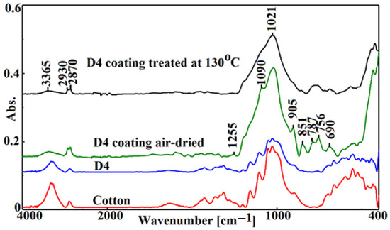 - Chung, C.; Lee, M.; Kyung Choe, E. Characterization of cotton fabric scouring by FT-IR ATR spectroscopy. Carbohydr. Polym. 2004, 58, 417–420. [Google Scholar] [CrossRef]