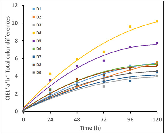 2.7. Sensitizer Stability to Light by CIEL*a*b* Color Measurements