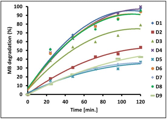 - Houas, A.; Lachheb, H.; Ksibi, M.; Elaloni, E.; Guillard, C.; Herrmann, J.M. Photocatalytic degradation pathway of methylene blue in water. Appl. Catal. B 2001, 31, 145–157. [Google Scholar] [CrossRef]