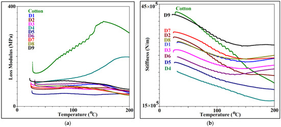 | Sample (30 °C) | Storage Modulus (G′) (MPa) | Stiffness (N/m) | Loss Modulus | Loss Factor | ||