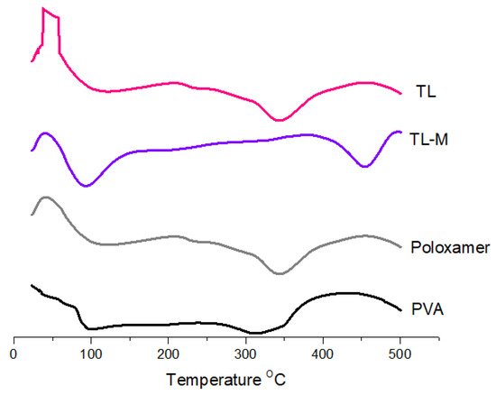 Thermal analysis of TL, TL-M, poloxamer, and PVA.