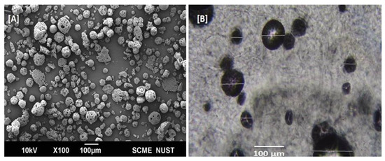 Microsponges generally have high porosity, which plays an important role in the controlled release of entrapped drug particles [36]. Well-dispersed TL-M was observed by scanning electron microscopy (Figure 4A). The microsponges showed a spherical shape and porous surface (Figure 4A). The presence of the porous surface can be attributed to phase evaporation during hardening of the formulation. In Figure 4B, a compound microscopy image of TL-MG is shown.
