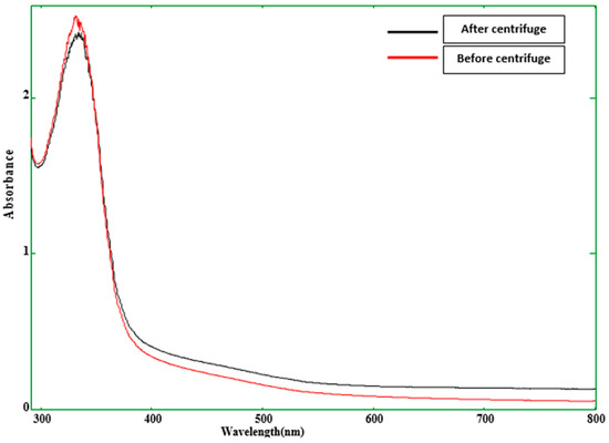 This trend was observed due to the aggregation of particles in the higher concentration of mucilage in the aqueous medium, whereas, in lower concentrations, it decreased due to the more diluted form of mucilage solution and smaller surface area. Also, the concentration of solid particles of TM, chemical reactions, variation in the surface charge of the mucilage particles, and interaction of mucilage with water may affect the particle size of the coating solution. Wijesena et al. [15] stated that several factors such as temperature and concentration of polysaccharides directly affect the particle size. Herein, it has been observed that with the increasing concentration of the mucilage particle size of the solution increased due to the uniform mixing of the solution at a particular speed. Different concentrations of the mucilage affected the gelling properties of mucilage. Therefore, the particle size and zeta potential of all the treatments are varied. Furthermore, TM powder showed excellent water solubility due to the smaller particles, as shown in Figure 1. Minor variation was observed at the 330 nm wavelength before the centrifuge and after the centrifuge of the TM solution. It proved that TM has remarkable swelling properties when it is mixed with water. The swelling property of TM contributes to its solubility by increasing the surface area exposed to the solvent.