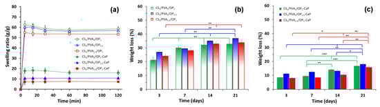- Ma, P.; Wu, W.; Wei, Y.; Ren, L.; Lin, S.; Wu, J. Biomimetic gelatin/chitosan/polyvinyl alcohol/nano-hydroxyapatite scaffolds for bone tissue engineering. Mater. Des. 2021, 207, 109865. [Google Scholar] [CrossRef]