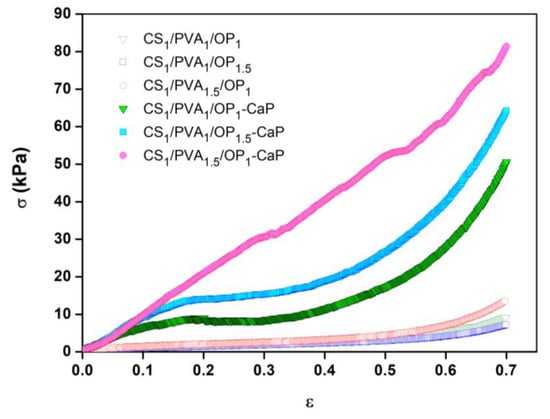 | CS1/PVA1/OP1-CaP | 1.84 ± 0.04 | 63.9 | 79:21 | 70.4 ± 11.6 | 50.6 ± 4.9 |