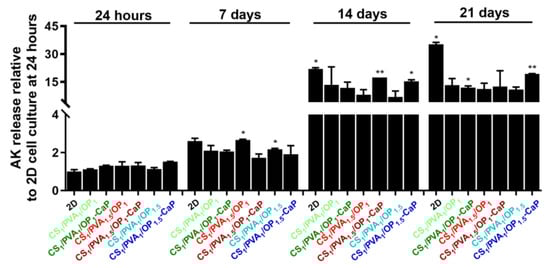 | CS1/PVA1.5/OP1 | - | - | - | 9.3 ± 0.4 | 13.4 ± 0.2 |