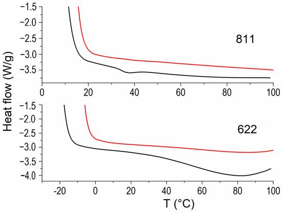 Double-run DSC analyses on 622 and 811 samples (black: 1st run; red: 2nd run).