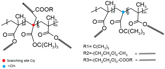 - Bujak, P.; Henzel, N.; Matlengiewicz, M. Microstructure study of poly(tert-butyl acrylate) by 13C NMR spectroscopy. Int. J. Polym. Anal. Charact. 2007, 12, 431–443. [Google Scholar] [CrossRef]