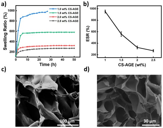 2.3. Swelling Property and Microstructure of the Poly(AA-co-CS-AGE) Hydrogel