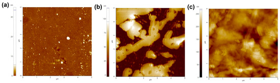 Atomic force microscope (AFM) images of substrate surfaces. (a) Non-coated, (b) collagen-coated, and (c) collagen hydrogel substrates.