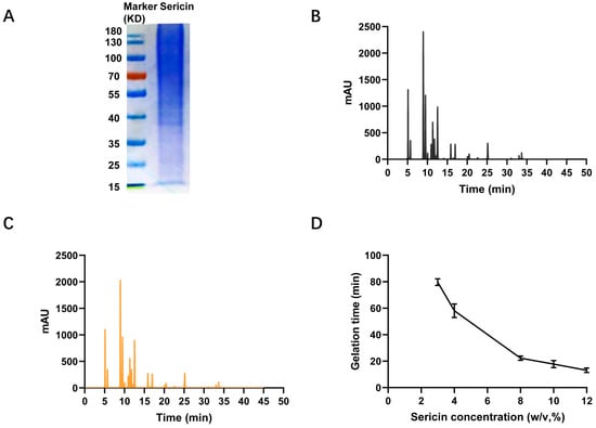 - Liu, J.; Shi, L.; Deng, Y.; Zou, M.Z.; Cai, B.; Song, Y.; Wang, Z.; Wang, L. Silk sericin-based materials for biomedical applications. Biomaterials 2022, 287, 121638. [Google Scholar] [CrossRef]