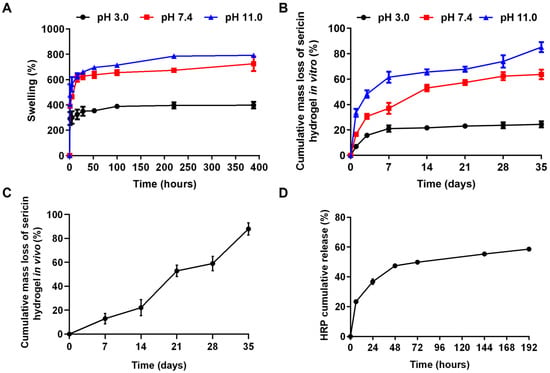 2.4. Swelling Characteristics of the Sericin Hydrogels