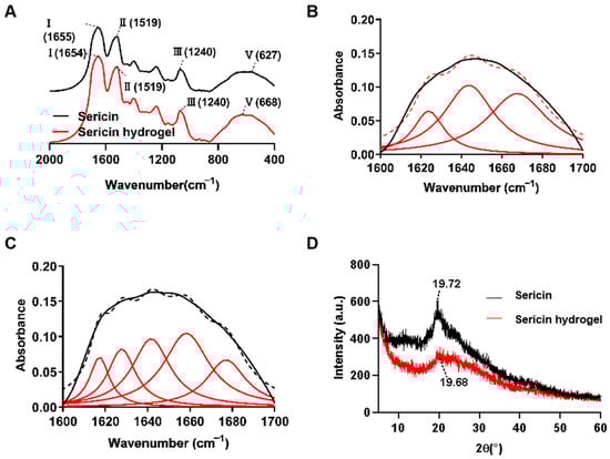 2.7. Secondary Structure and Crystallinity of Sericin Hydrogels