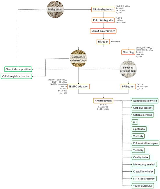 Flow chart of the cellulose and nanocellulose isolation and characterization.