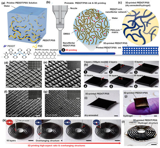 - Yuk, H.; Lu, B.; Lin, S.; Qu, K.; Xu, J.; Luo, J.; Zhao, X. 3D printing of conducting polymers. Nat. Commun. 2020, 11, 1604. [Google Scholar] [CrossRef] [PubMed]