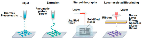 - Rothbauer, M.; Eilenberger, C.; Spitz, S.; Bachmann, B.E.M.; Kratz, S.R.A.; Reihs, E.I.; Windhager, R.; Toegel, S.; Ertl, P. Recent advances in additive manufacturing and 3D bioprinting for organs-on-A-chip and microphysiological systems. Front. Bioeng. Biotechnol. 2022, 10, 837087. [Google Scholar] [CrossRef]