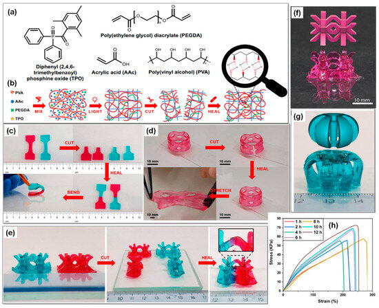| Double-network hydrogels | 3D printing of high-toughness double network hydrogels | Xiang, Z. et al., (2022) [91] |