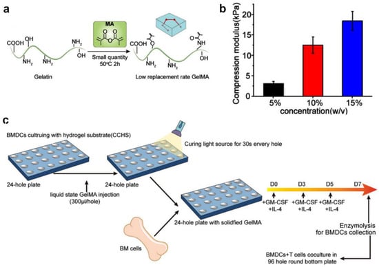 - Deng, J.; Xie, Y.; Shen, J.; Gao, Q.; He, J.; Ma, H.; Ji, Y.; He, Y.; Xiang, M. Photocurable Hydrogel Substrate—Better Potential Substitute on Bone-Marrow-Derived Dendritic Cells Culturing. Materials 2022, 15, 3322. [Google Scholar] [CrossRef] [PubMed]