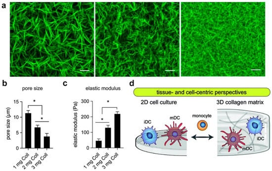 - Sapudom, J.; Alatoom, A.; Mohamed, W.K.; Garcia-Sabaté, A.; McBain, I.; Nasser, R.A.; Teo, J.C. Dendritic cell immune po-tency on 2D and in 3D collagen matrices. Biomater. Sci. 2020, 8, 5106–5120. [Google Scholar] [CrossRef] [PubMed]