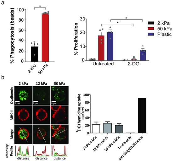 - Mennens, S.F.B.; Bolomini-Vittori, M.; Weiden, J.; Joosten, B.; Cambi, A.; Dries, K.V.D. Substrate stiffness influences phenotype and function of human antigen-presenting dendritic cells. Sci. Rep. 2017, 7, 1–14. [Google Scholar] [CrossRef]