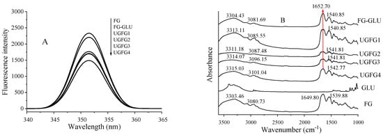 UG treatment influence on the fluorescence intensity (A) and FTIR (B) of samples.